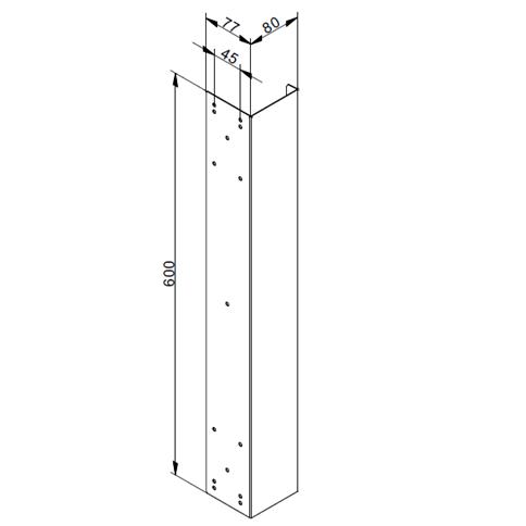 Eindstijl met gaten voor bevestiging deurbeslag. Passend op deurpanelen met een dikte van 80 mm en hoogte van 610 mm. (Effectieve hoogte 600 mm).