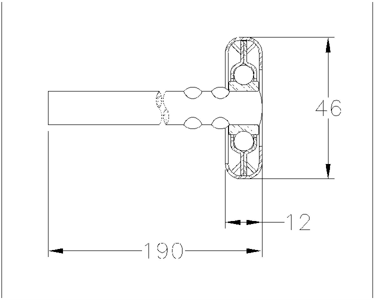 Looprol lang, stalen wiel, max. belasting 45 kg.