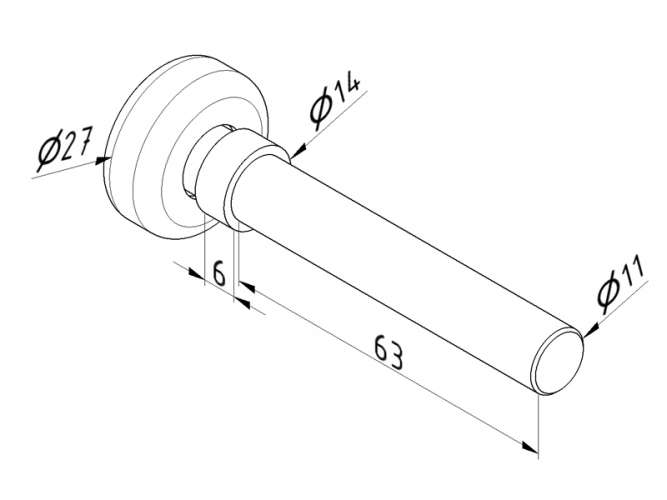 Looprol met een stalen loopwiel met diameter van 27 mm en een as met een diameter van 11 mm en een lengte van 62 mm.