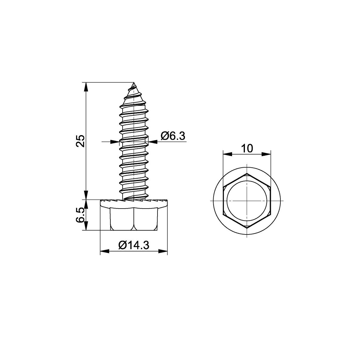 Zelftappende parker voor het bevestigen van materialen op deurbladen. 6,3 x 25 mm, zeskant kop met kartelring.