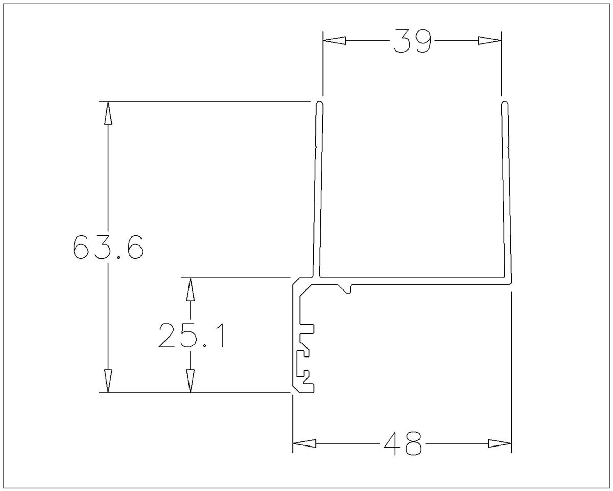 Loopdeurprofiel met lip, voor paneeldikte 40 mm. Passend op rubberenprofiel 10716.