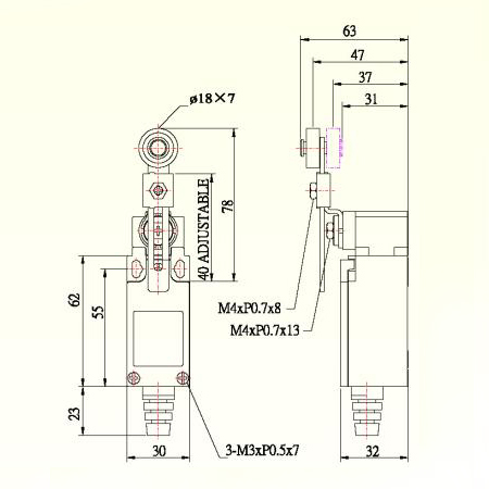 Universele schakelaar voor loopdeuren en schuifgrendels. Ook te gebruiken als eindschakelaar. Met verstelbare hefboom.