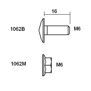 Slotbout M6 x 16 mm, 2 mm hoog vierkant.