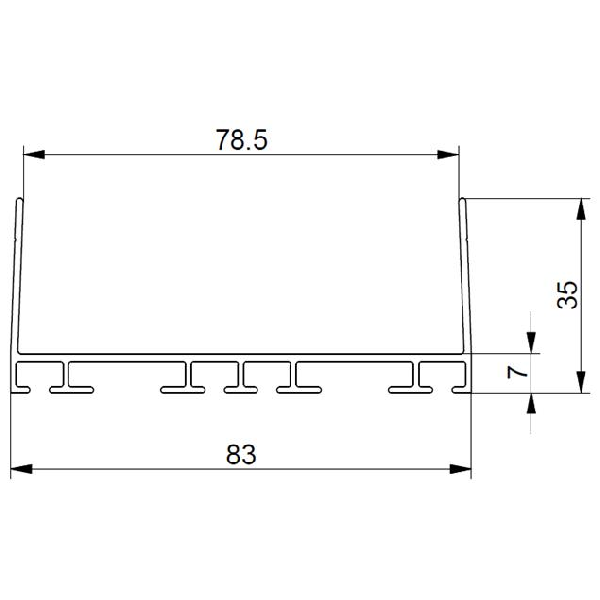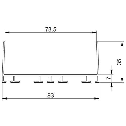 U-profiel te gebruiken als top- of bodemprofiel, passend op deurpanelen met een dikte van 80 mm. Geschikt voor dubbele bodemrubbers.