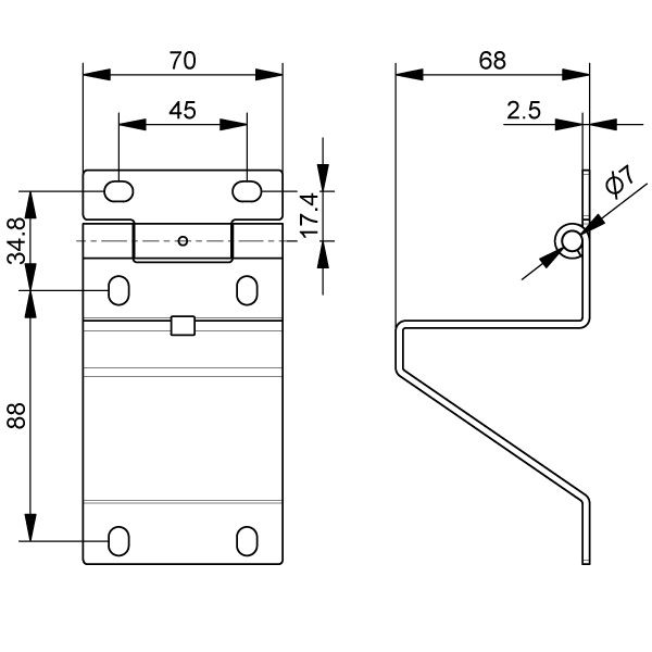 Verstelbaar zijscharnier met verlaagd bovenblad. Inclusief rolhouder, slotbouten en moeren.